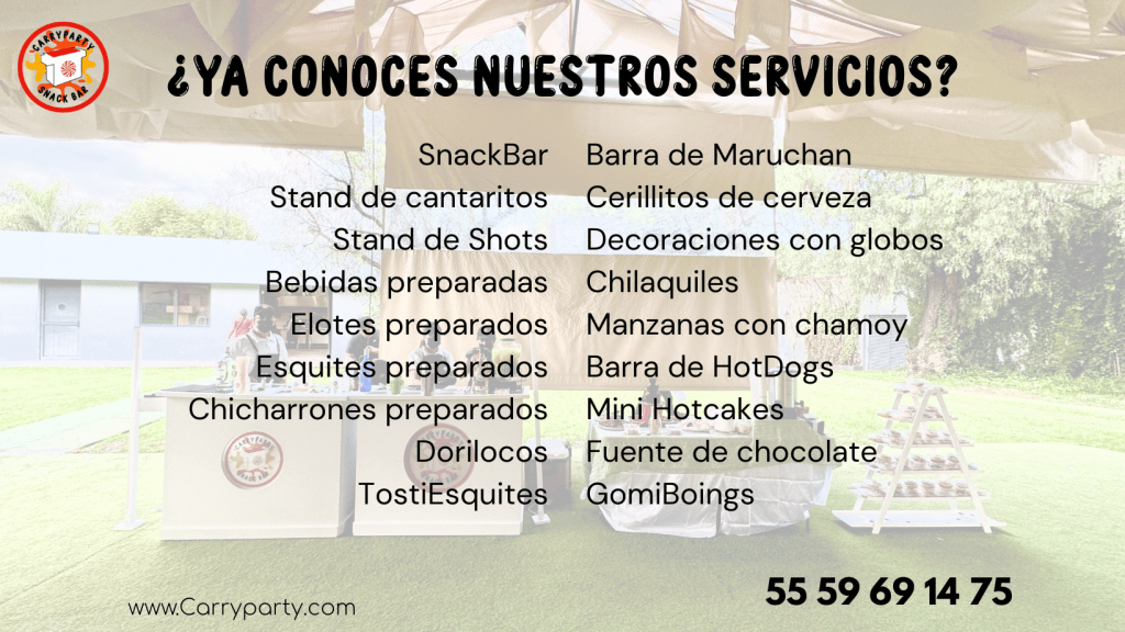 Descubre la magia de nuestros servicios en CarryParty. Personaliza tu fiesta con una explosión de sabores y opciones que tenemos para ti.