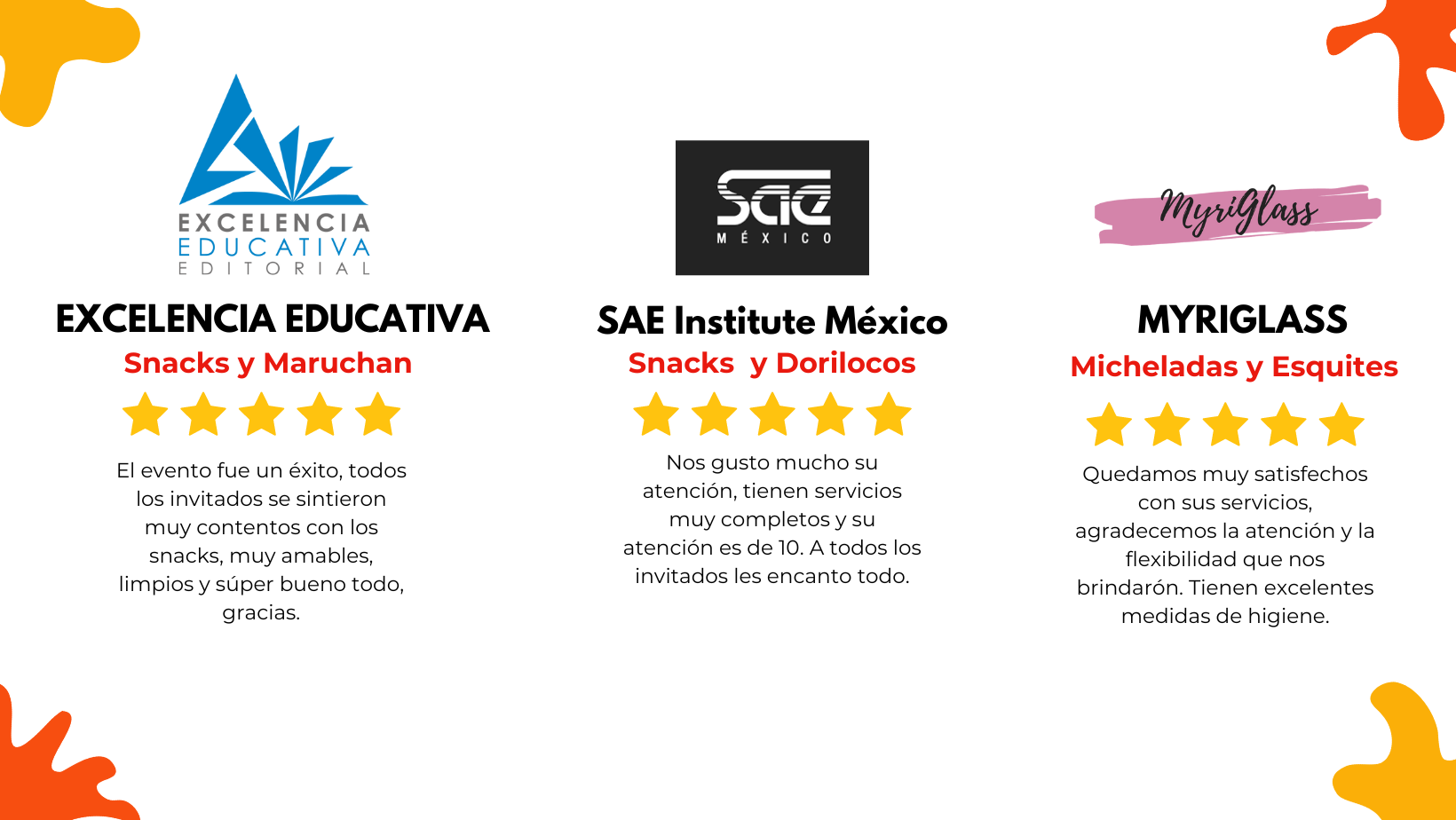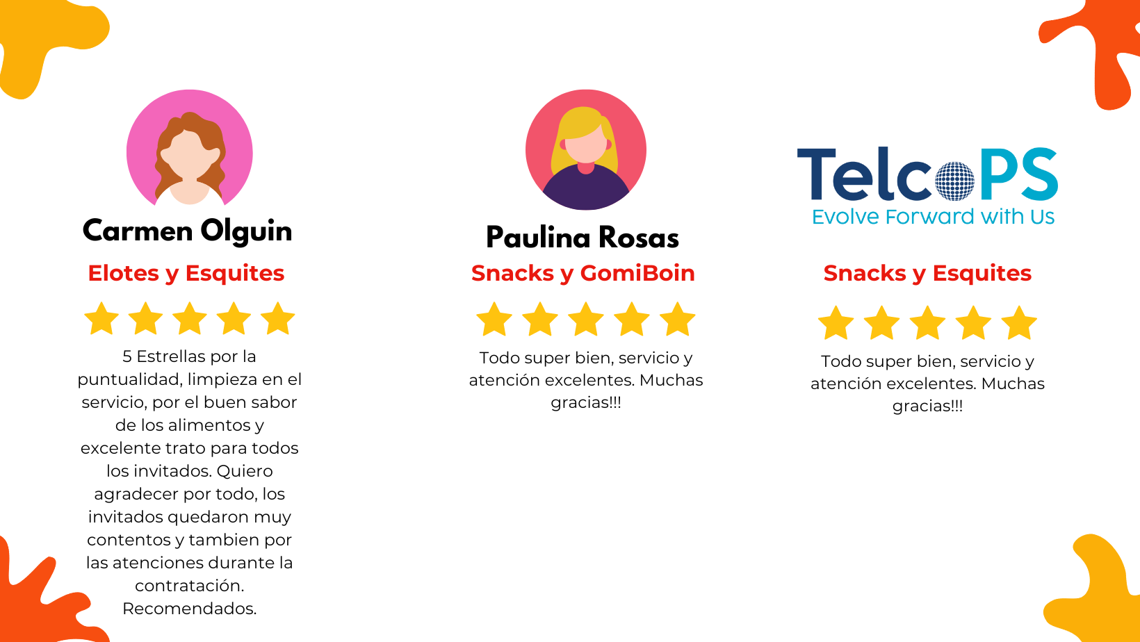 ¿Quieres dejar tu opinión acerca de nuestros servicios en tu evento? Tu feedback es muy importante para nosotros.
