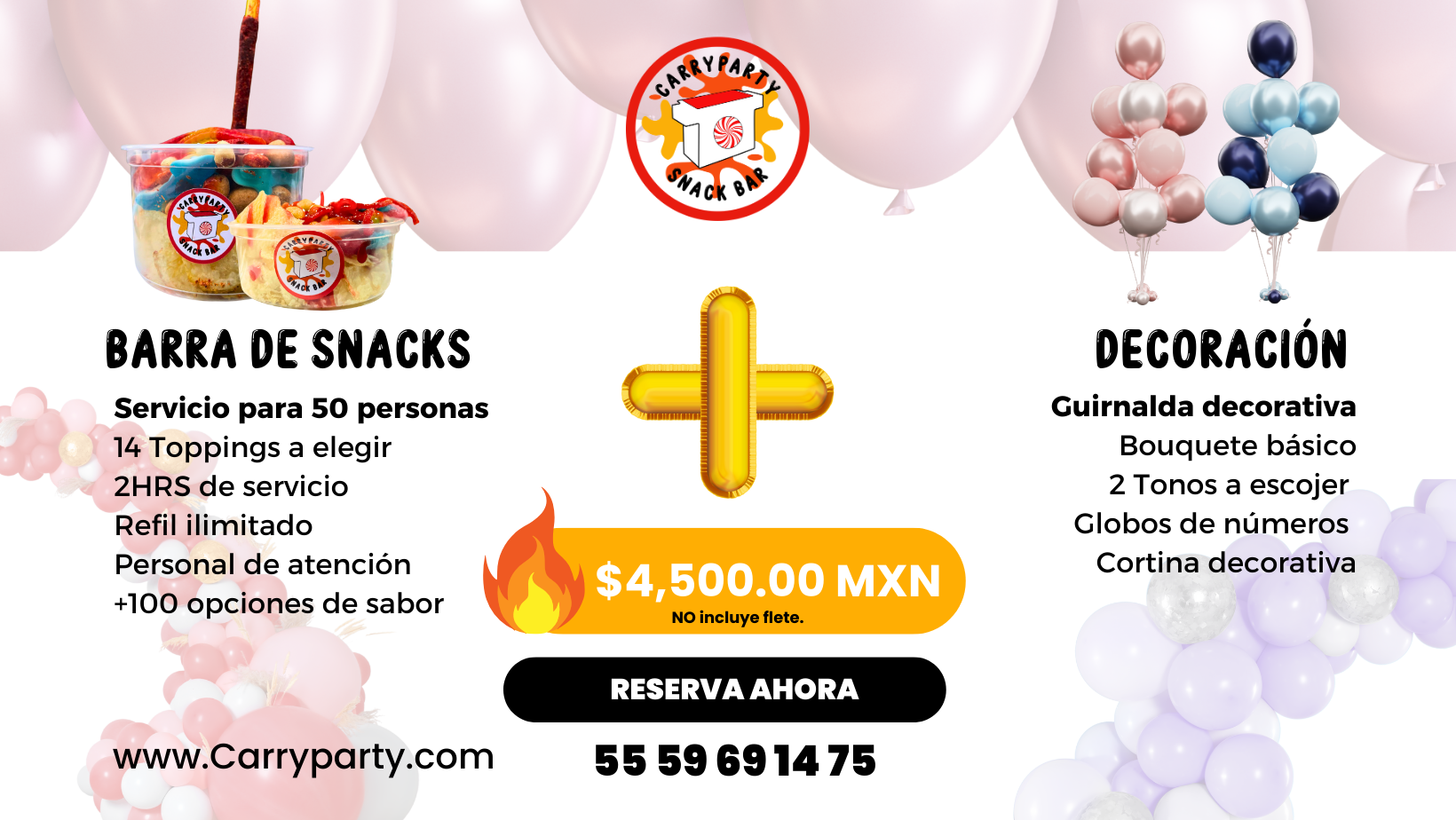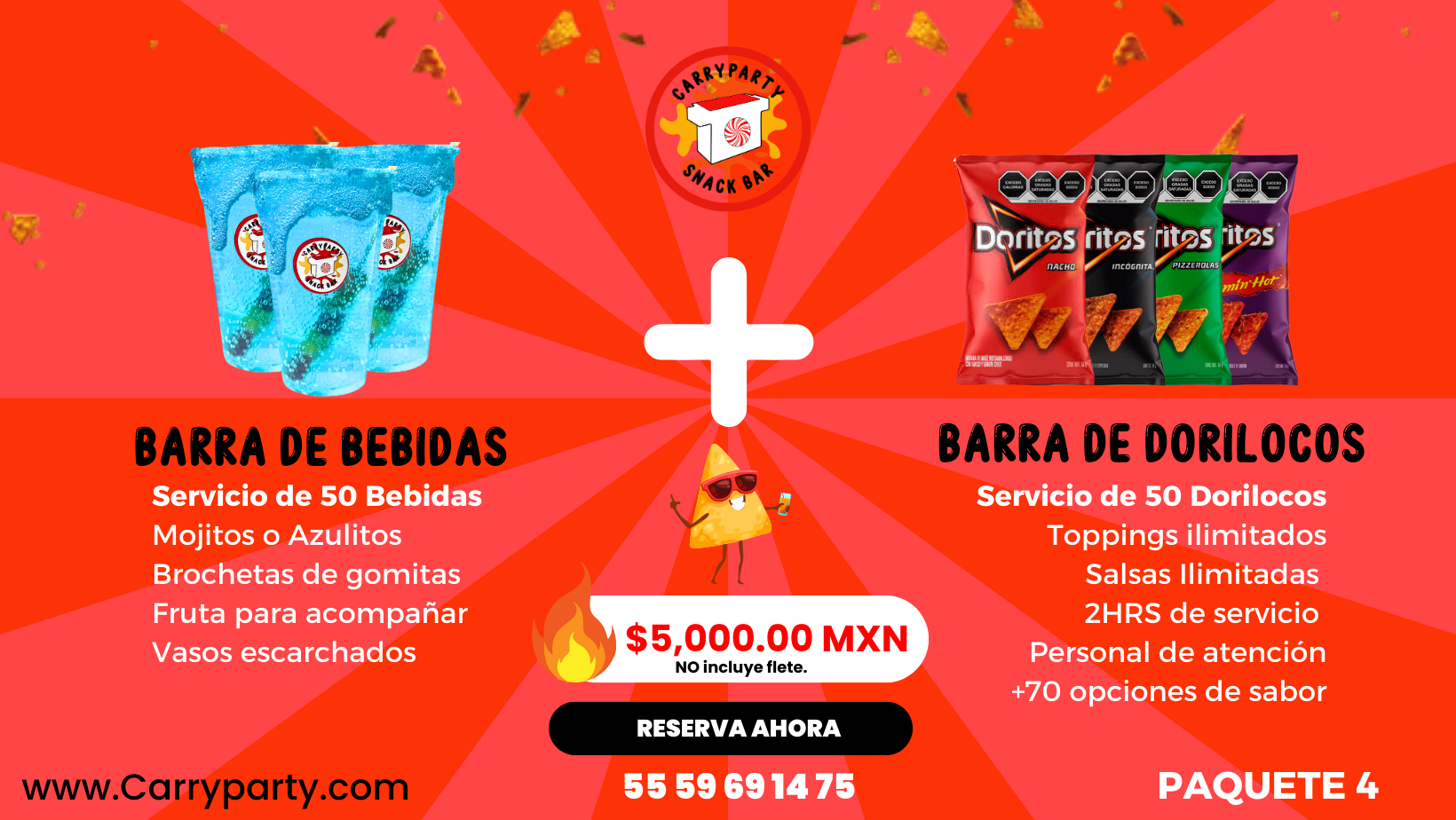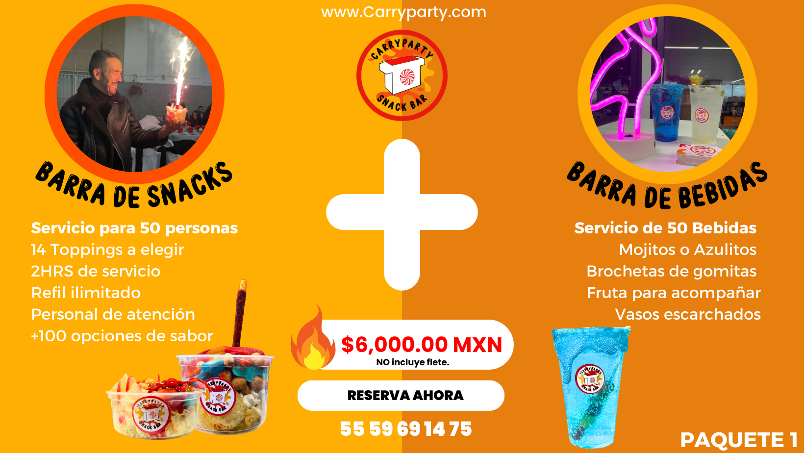 Con nosotros la diversión y el sabor se unen para transformar tus eventos en experiencias inolvidables. Contamos con una amplia variedad de Snacks, bebidas y servicios. CarryParty te ofrece la libertad de personalizar cada detalle a tu manera. Pero eso no es todo: el corazón de CarryParty está en nuestro servicio al cliente.